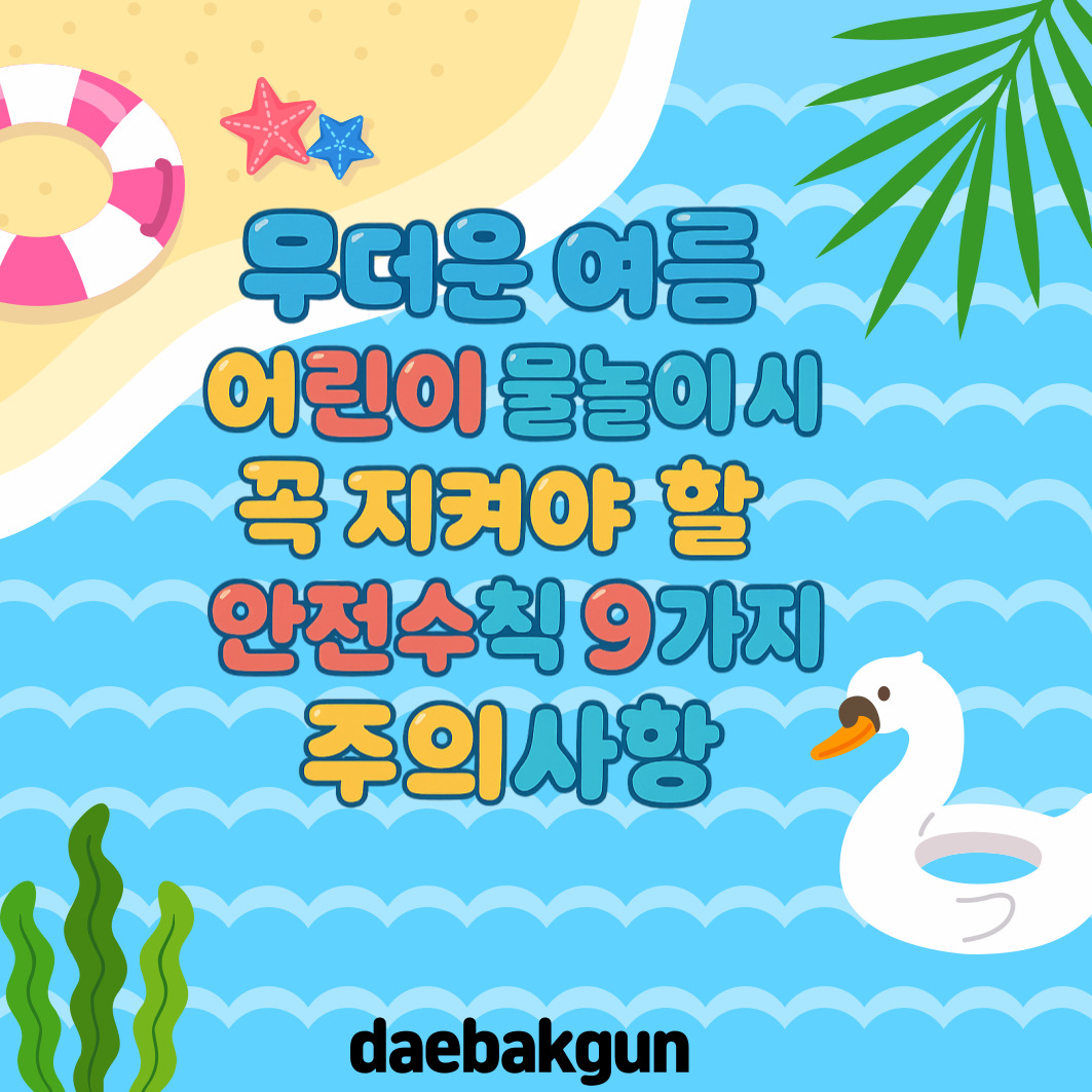 아이들이 안전하고 즐겁게 물놀이를 즐기려면 부모와 보호자의 관심과 주의가 필수입니다. 오늘 소개한 주의사항과 안전수칙을 꼭 기억하시고 실천해 주세요. 모두가 안전한 여름 보내시길 바랍니다.