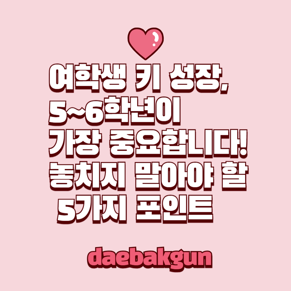 특히 초등학교 5~6학년은 초경이 시작되기 직전 또는 막 시작된 시기로, 성장 속도가 빠르면서도 관리의 중요성이 높은 시점입니다. 키가 클 수 있는 마지막 기회를 최대한 살려야 해요.